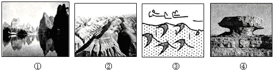 本题考查外力作用及塑造的地貌。 小题1:图示①反映喀斯特地貌的流水溶蚀作用,②表示黄土高原千沟万壑,属于流水侵蚀作用;③表示沙丘,为风力沉积作用;④风蚀蘑菇,为风力侵蚀而形成的地貌。 小题2:黄土高原的千沟万壑是流水侵蚀地貌。 |