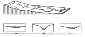 该图河流中三个不同位置与三幅河流断面图及外力作用形式对应正确的是A.①—a—侵蚀作用为主B.②—c—