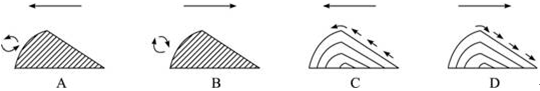 此题首先分清图中静止沙丘与移动沙丘的结构图。A、B是移动沙丘,为单向结构;而C、D是双向结构,为静止沙丘。影响北京的沙丘是移动沙丘,并非静止沙丘,因而应选A、B中的一个。又因为移动沙丘的迎风坡较平缓,背风坡较陡,因而应选A。 |