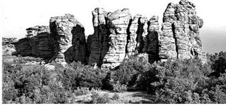 在内蒙古北大山地区首次发现一种花岗岩形成的石林景观,花岗岩石林主要分布在海拔1700m左右的一些山脊上,座座石峰,造型奇特,美不胜收,如下图所示。当地蒙古语称此石林为“阿斯哈图”,即险峻的岩石之意。据此完成下列各题。![]() 小题1:图中“石林”景观,按照成因,其岩石为