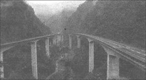 过去 山区公路多为“之”字形盘山公路。现在 兴建高速公路则是逢山开道 遇沟建桥 尽量取最短距离(如图