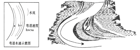 读图,回答第18题。![]() 有关河曲地貌、弯道速度、外力作用和沿岸人类活动的组合正确的是