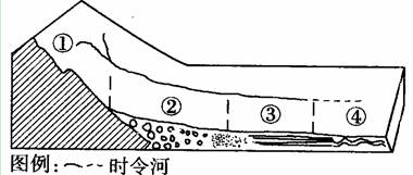 河流流出山谷 随流速减慢 可形成冲积扇地形 读图回答下列各题。小题1:沿A→B方向物质组成可能是 (