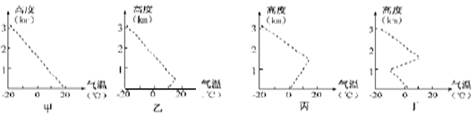 该图是某地气温垂直分布图 读图回答问题。小题1:甲 乙 丙 丁四图中最有利于大气污染物扩散的是:A.